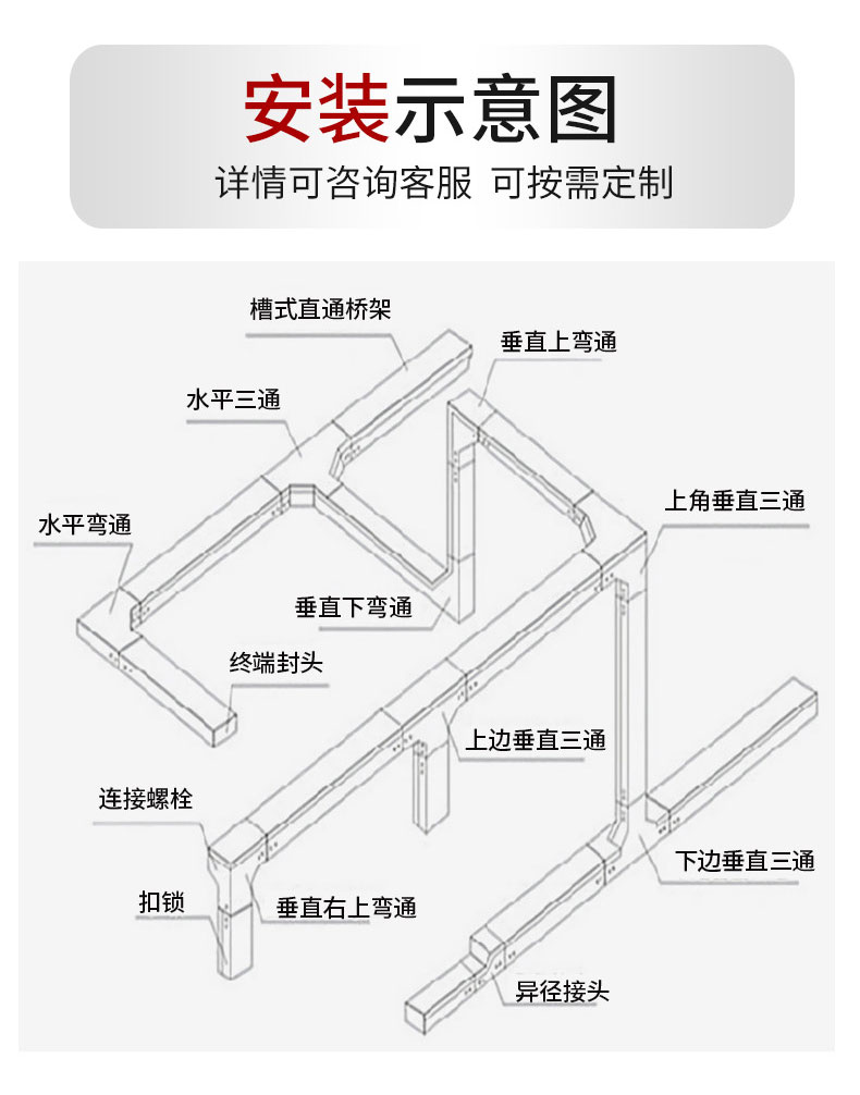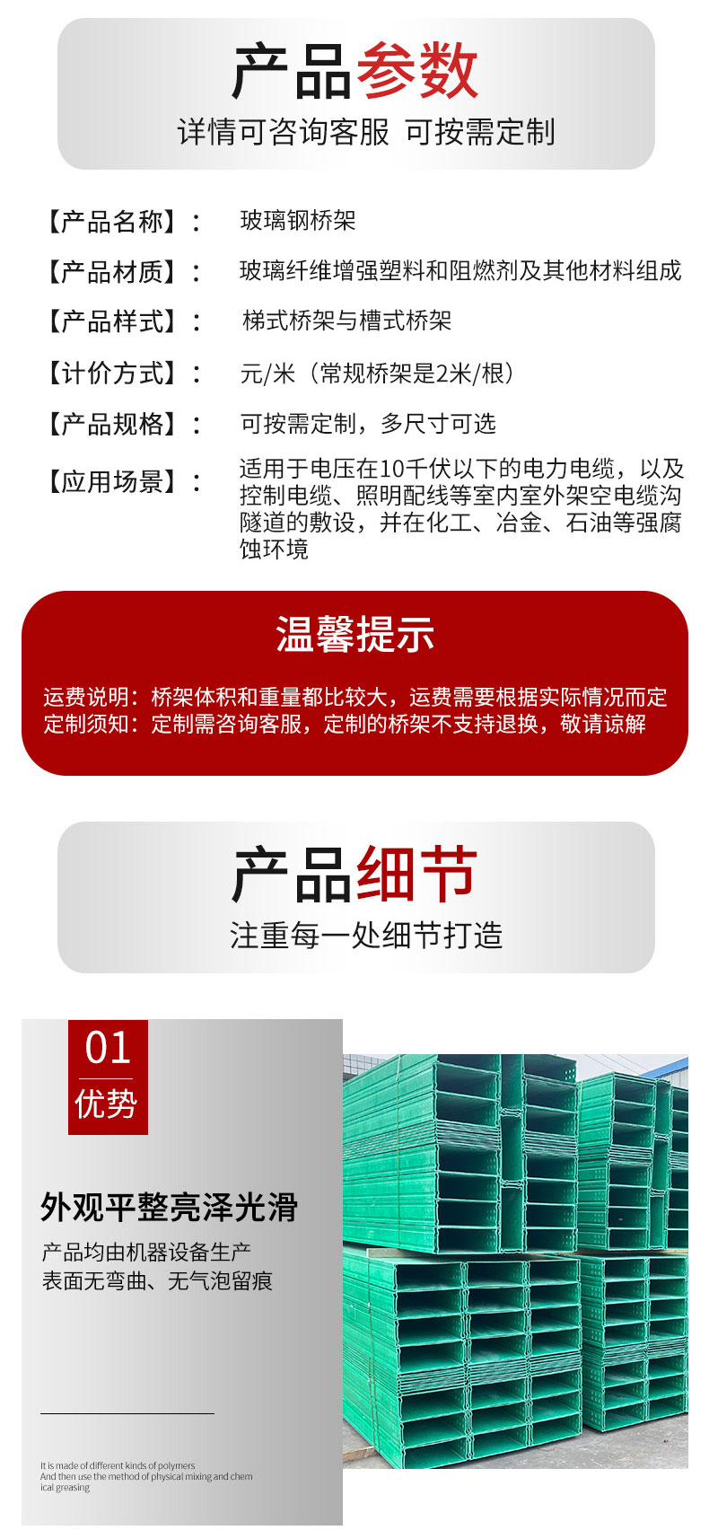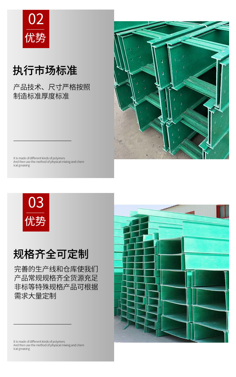 2)BHQ系列玻璃钢桥架具有应用广、强度高、重量轻、结构合理、造价低、寿命长、防腐性强、施工简单,配线灵活、安装标准、外形美观的特点,对您处的技术改造、扩充电缆,维护检修均带来方便。BHQ系列玻璃钢桥架的安装可因地制宜