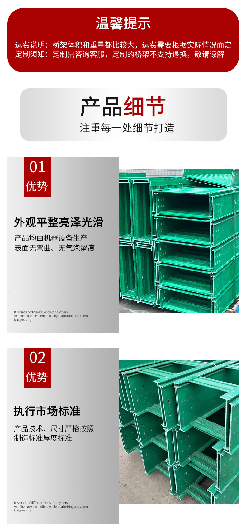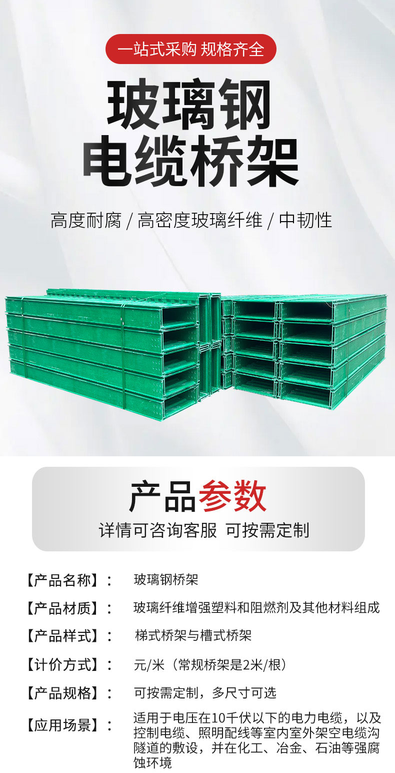 2)BHQ系列玻璃钢桥架具有应用广、强度高、重量轻、结构合理、造价低、寿命长、防腐性强、施工简单,配线灵活、安装标准、外形美观的特点,对您处的技术改造、扩充电缆,维护检修均带来方便。BHQ系列玻璃钢桥架支架的安装可因地制宜,就地钻孔安装,非常方便实用,是您很好的选择。